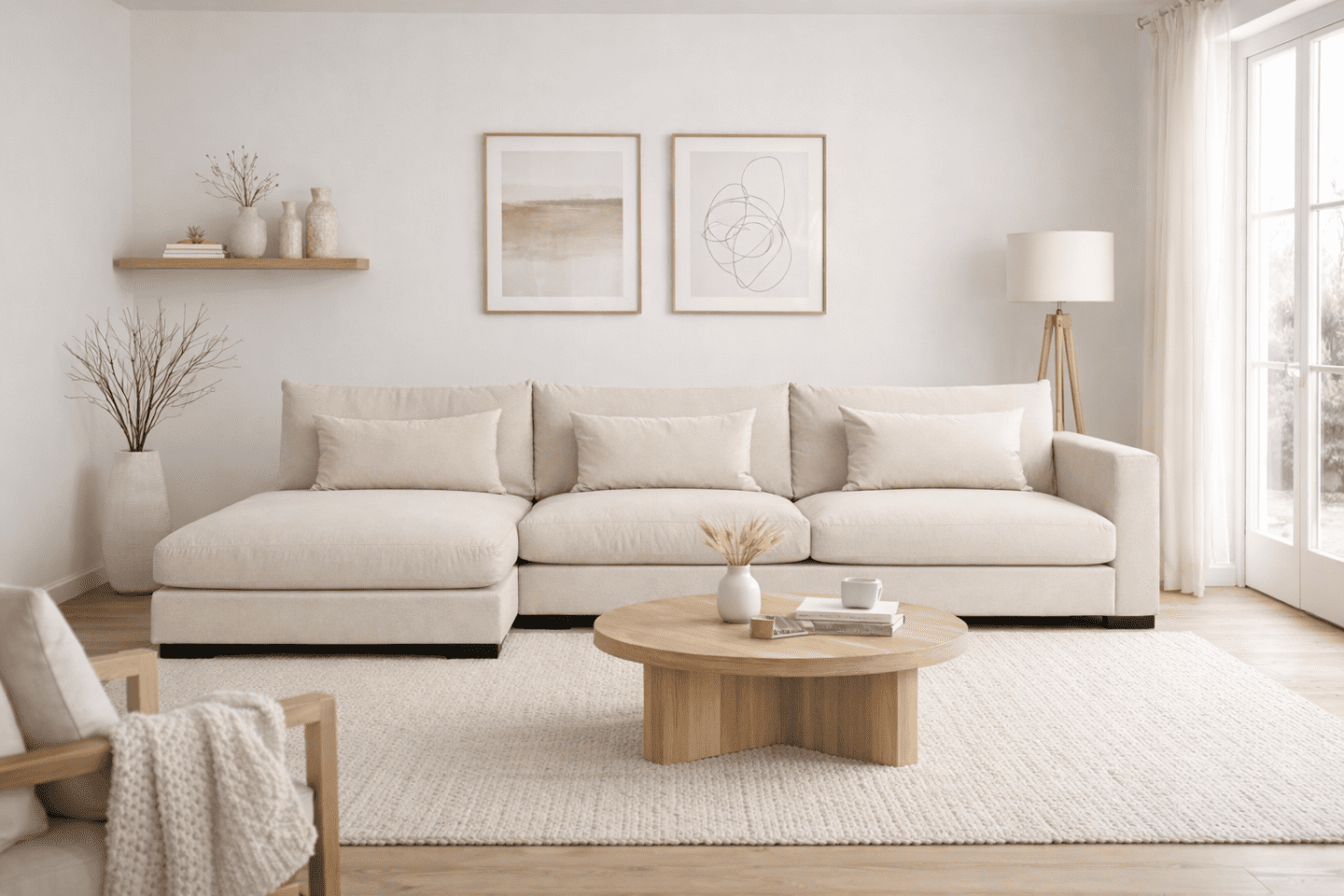 Kampinė sofa be patalynės dėžės išlaiko vizualinį lengvumą ir minimalistinį charakterį – būtent tai, kas būdinga skandinaviškam interjerui. Minkšti atlošai ir komfortiška sėdimoji dalis užtikrina patogų poilsį tiek kasdien, tiek priimant svečius.