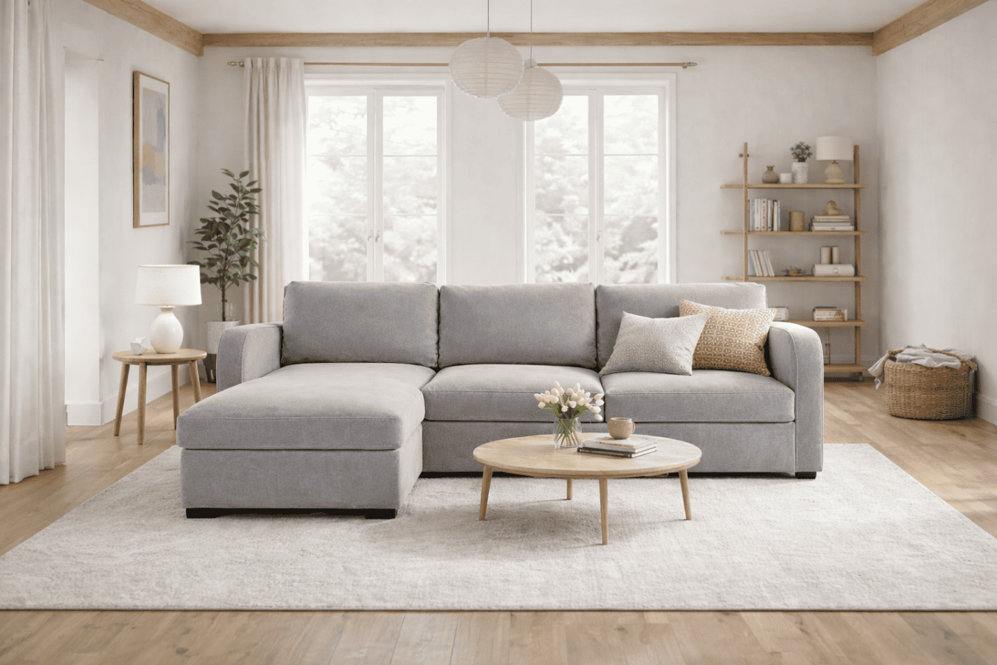 Užsisakykite skandinaviško stiliaus kampinę sofą internetu ir kurkite jaukius, harmoningus namus su Jaukumo idėjos.