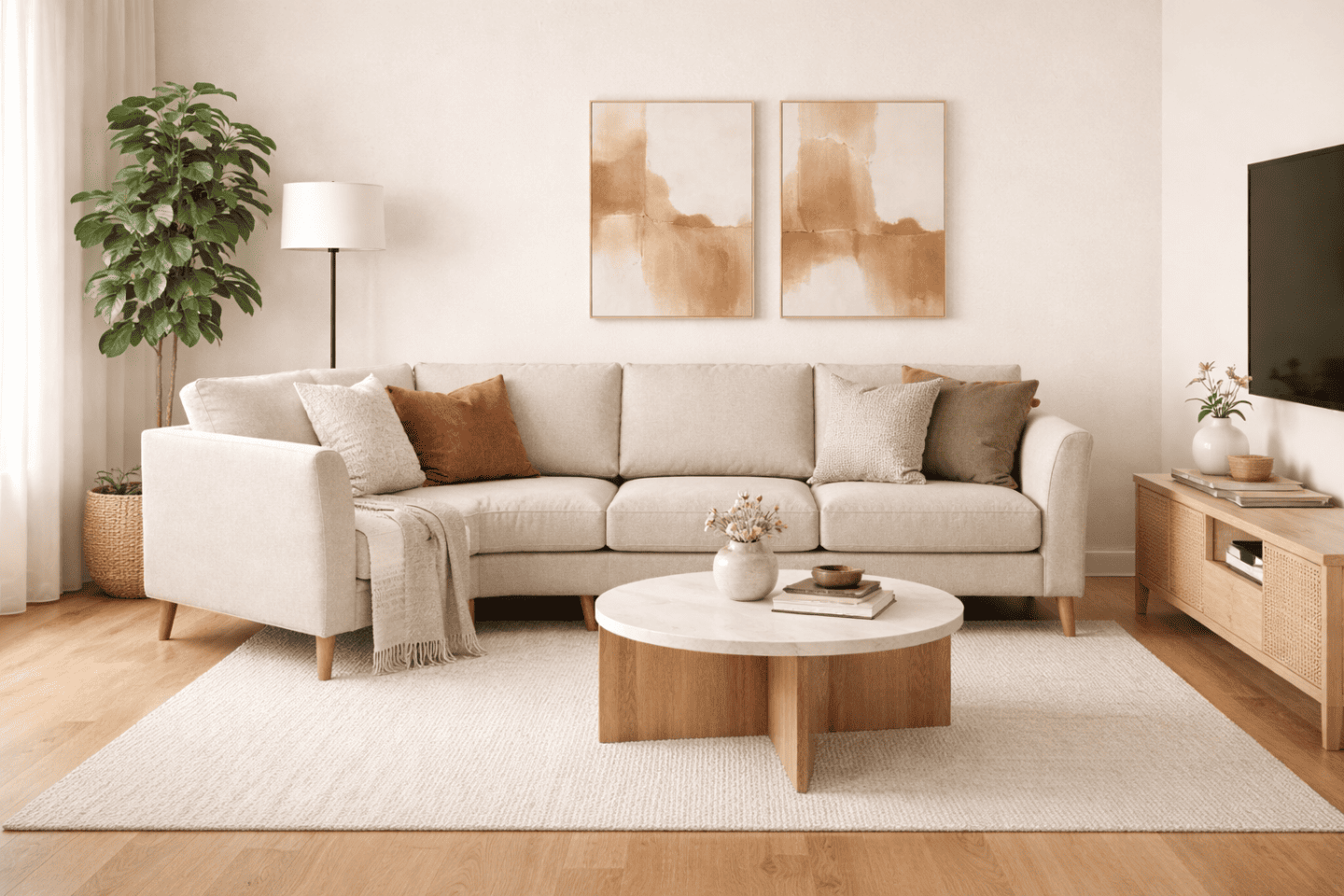 Užsisakykite skandinaviško stiliaus kampinę sofą internetu ir kurkite jaukius, harmoningus namus su Jaukumo idėjos.