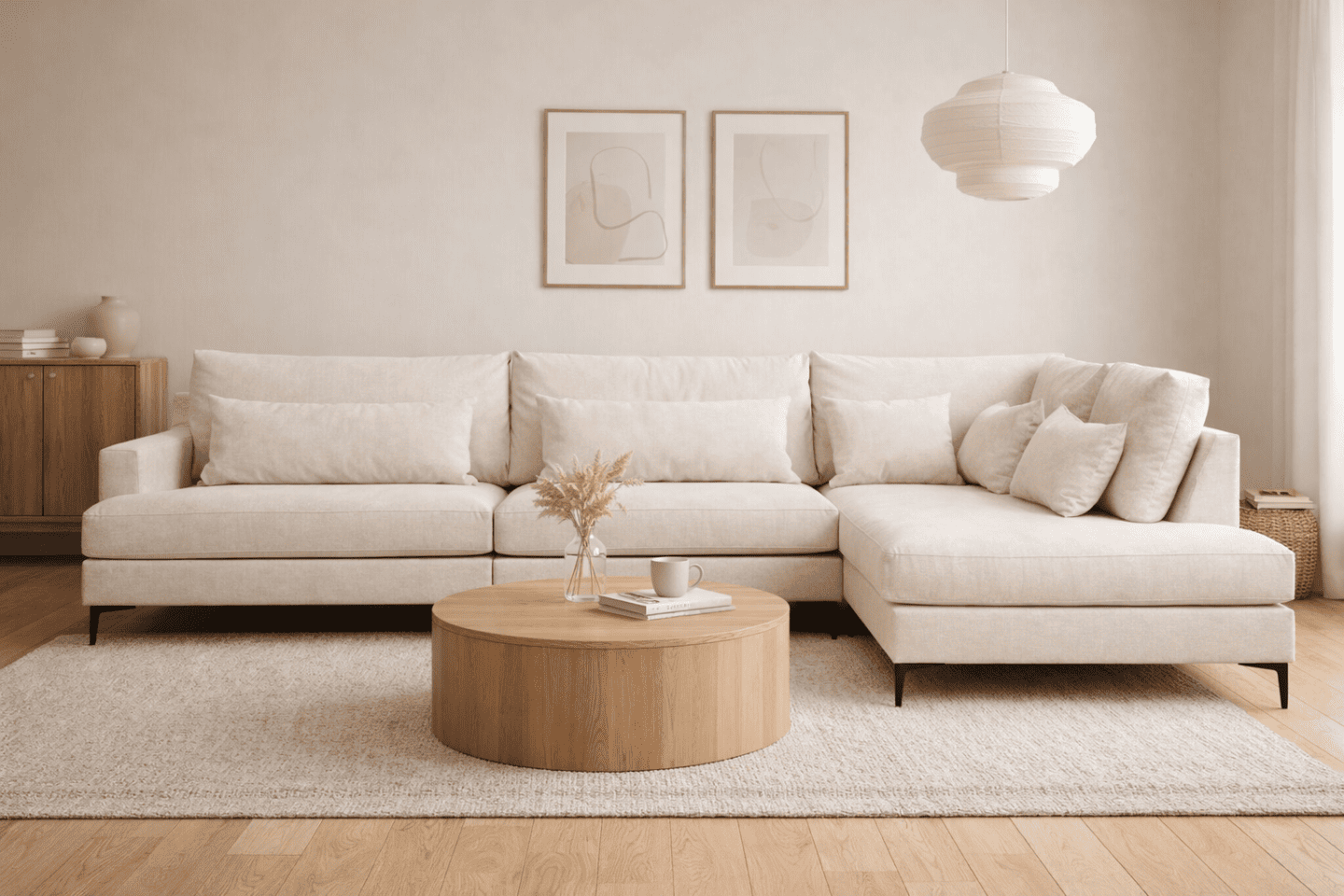Užsisakykite skandinaviško stiliaus kampinę sofą internetu ir kurkite jaukius, harmoningus namus su Jaukumo idėjos.