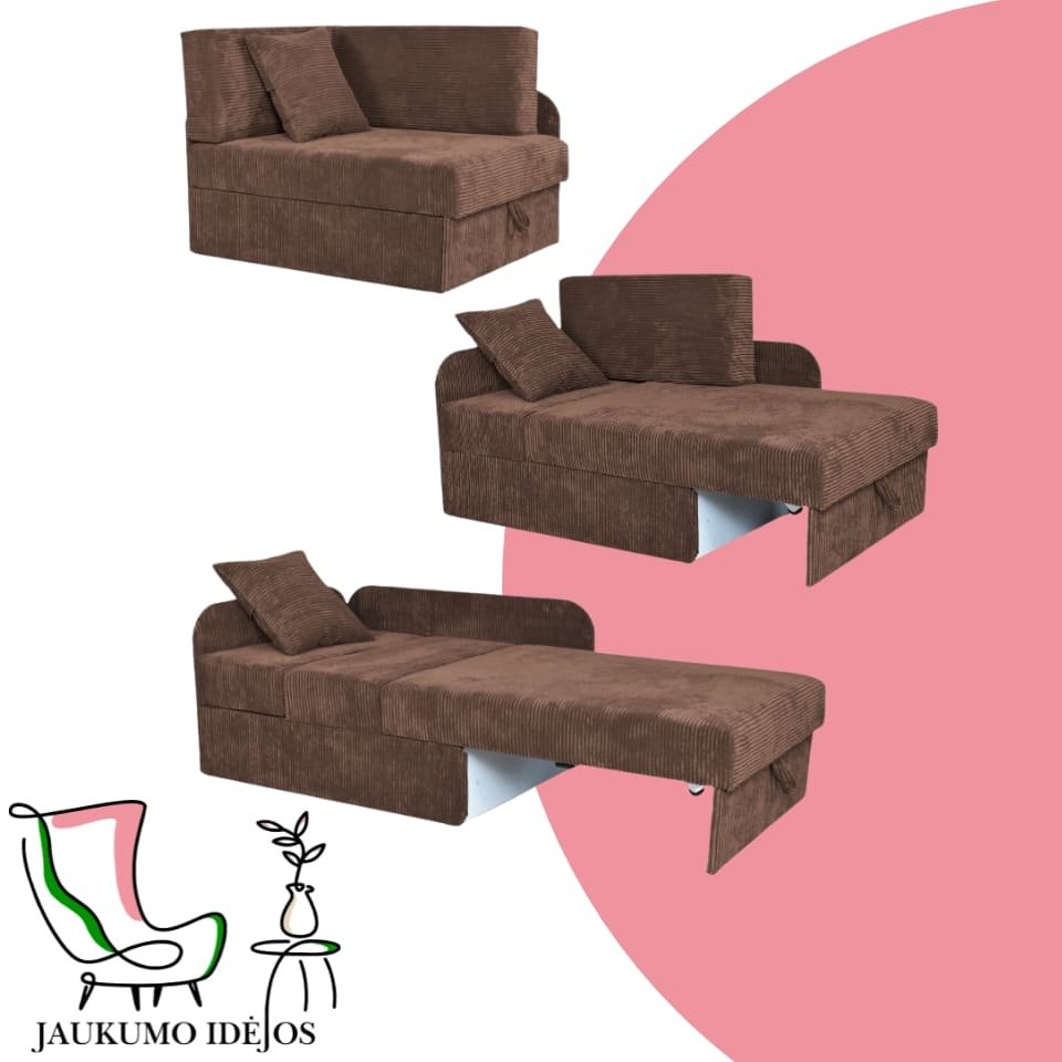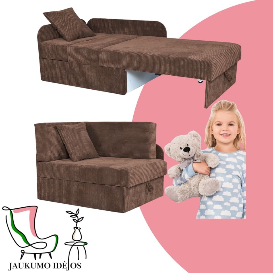 - Reguliuojamas miegojimo ilgis nuo 107 cm iki 144 cm ir net 180 cm, todėl kampinė sofa auga kartu su jūsų vaiku, o tai ilgainiui leidžia sutaupyti pinigų;