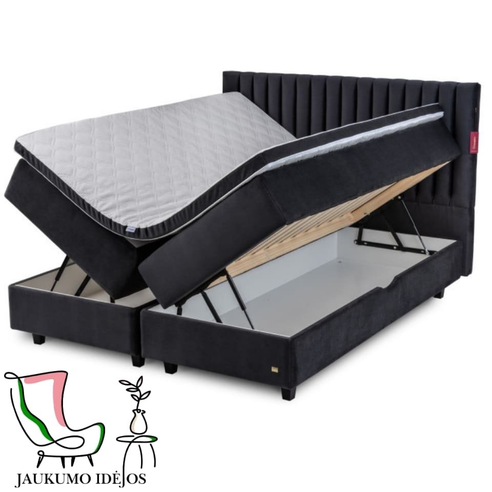 - Lovą su talpia patalynės dėže. Patogus čiužinio pakėlimo mechanizmas iš lovos šonų leis patogiai pasiekti visą dėžės turinį.