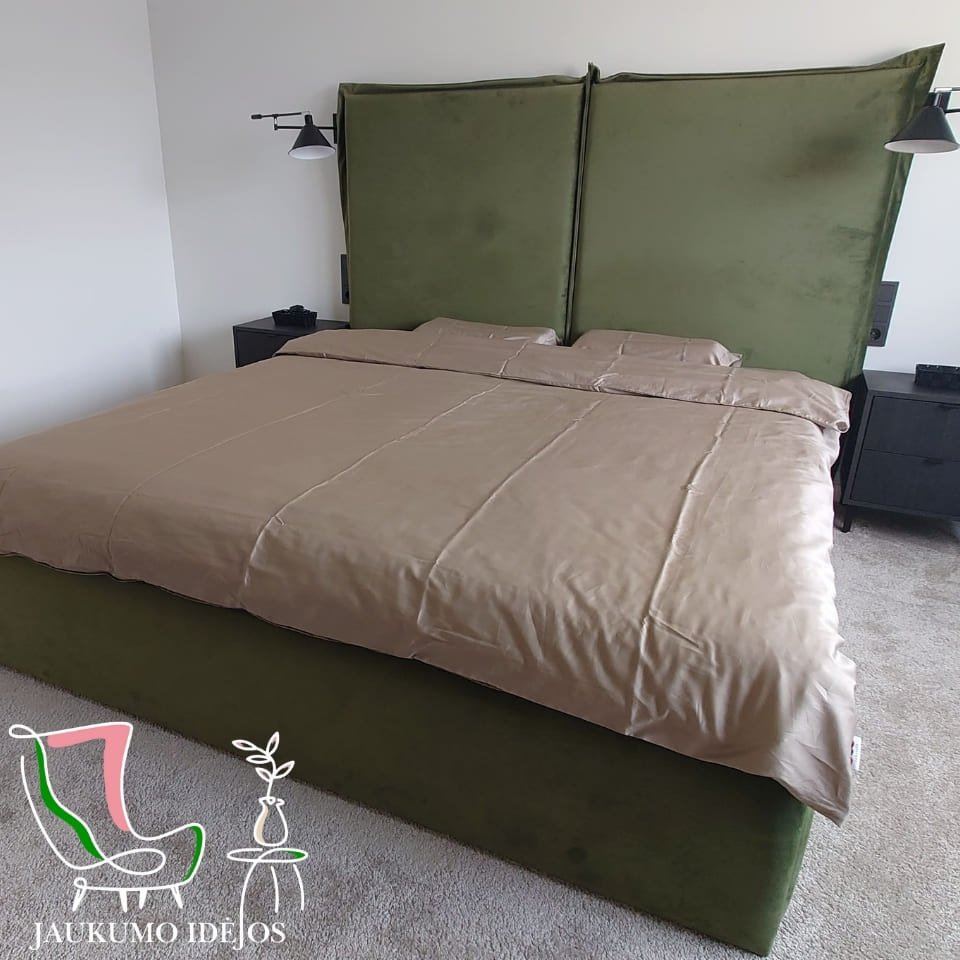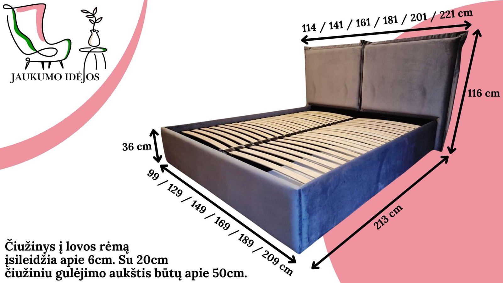 - Kadangi lovos konstrukcija apklijuojama porolonu ir kitomis minkštomis medžiagomis, todėl visi lovos matmenys gali šiek tiek kisti.