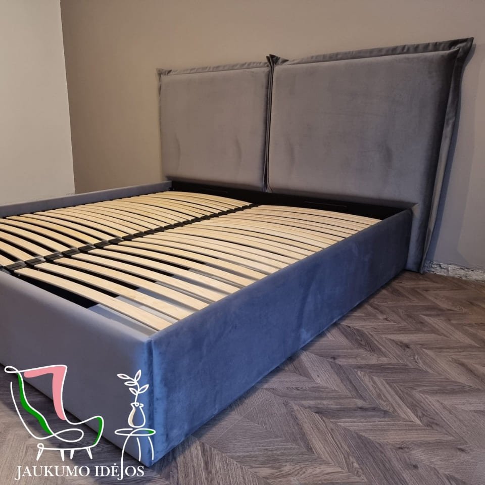 - Patogi ir erdvi patalynės dėžė, dugnas pasideda ant grindų, todėl nėra jokių svorio ribojimų.
