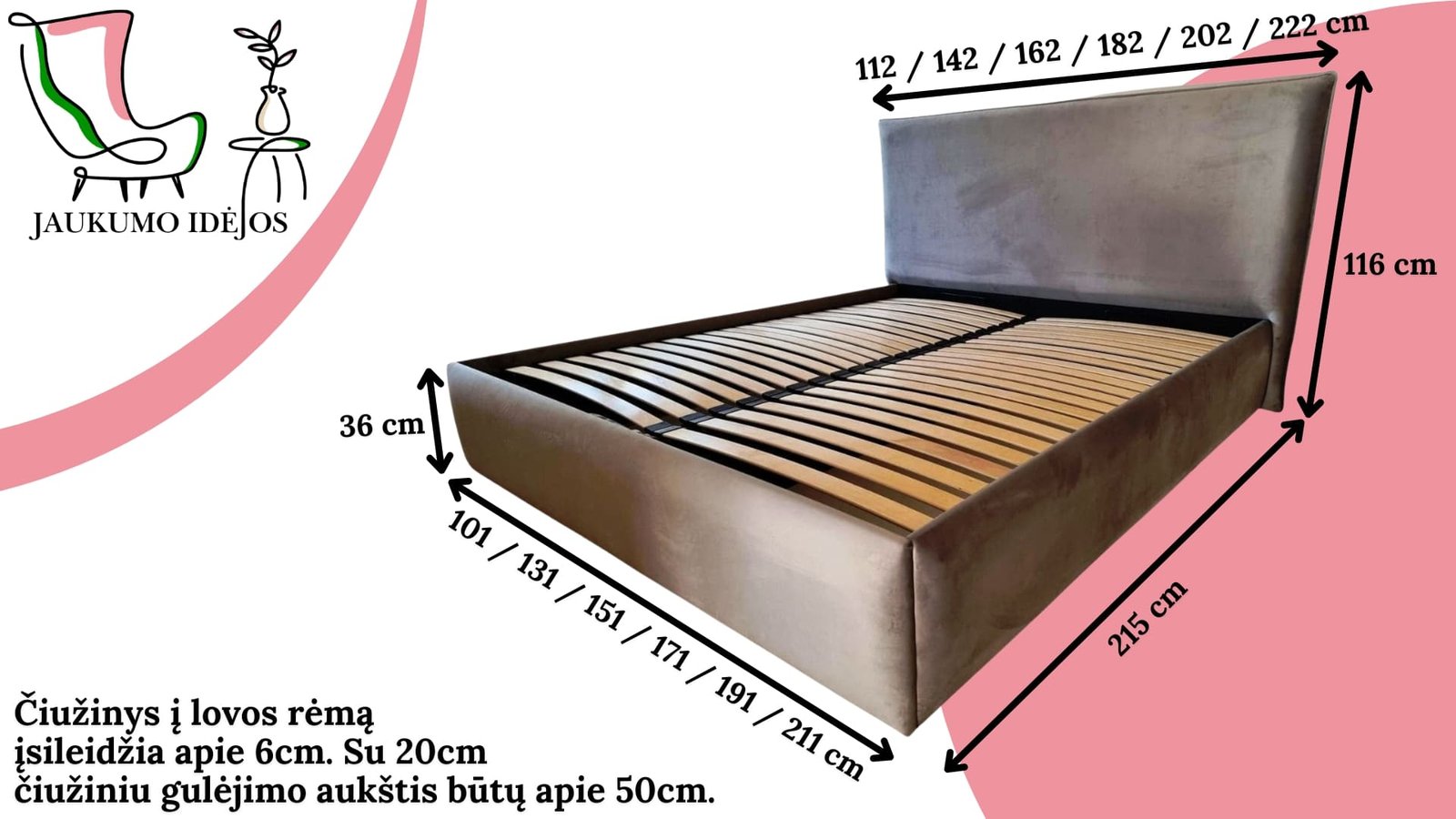JAUKUMO IDĖJOS - Lietuviškos miegamojo lovos, dvigulės lovos, lovos internetu Nr. 36