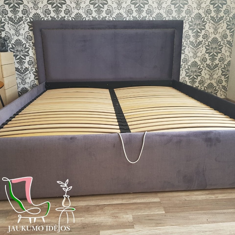 - Patogi ir erdvi patalynės dėžė, dugnas pasideda ant grindų, todėl nėra jokių svorio ribojimų.