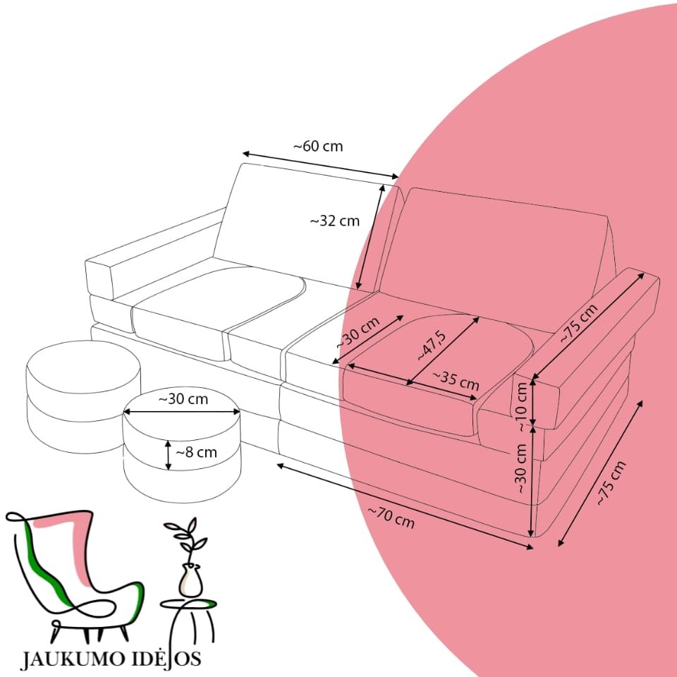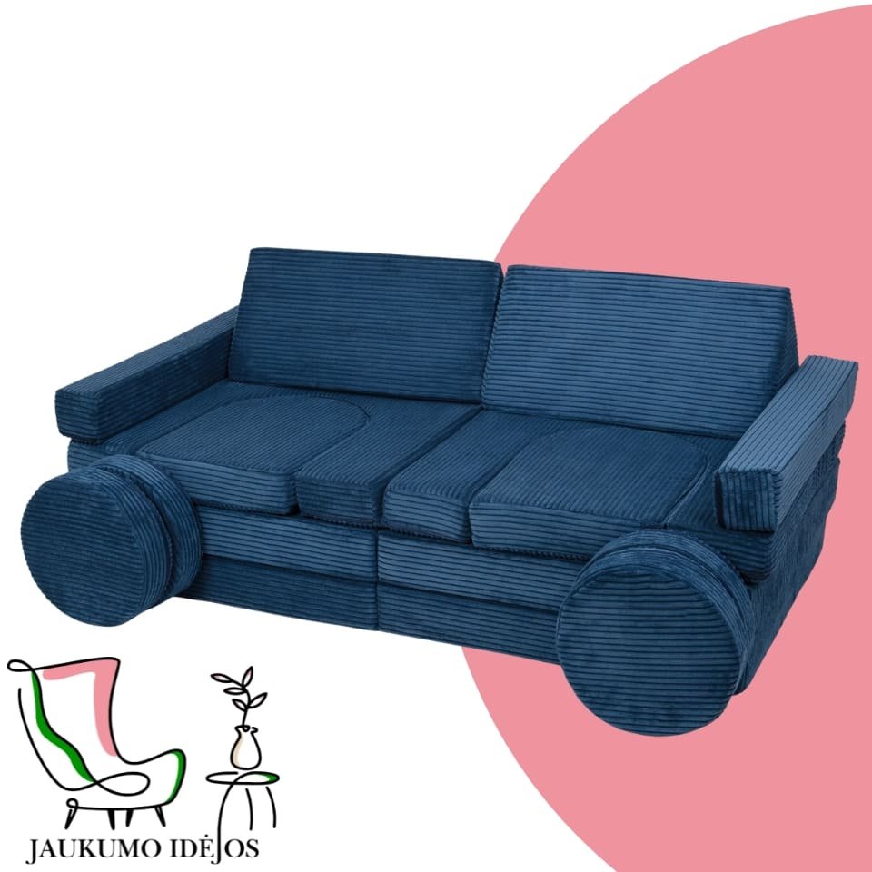 Šios modulinės sofos vaikams išsiskiria savo universalumu – atskiri minkšti moduliai gali būti lengvai perstatomi, todėl vaikai gali patys kurti savo erdves: nuo jaukios skaitymo vietos iki smagių žaidimų fortų. Būtent tokios jaukumo idėjos padeda ugdyti vaiko fantaziją ir savarankiškumą.