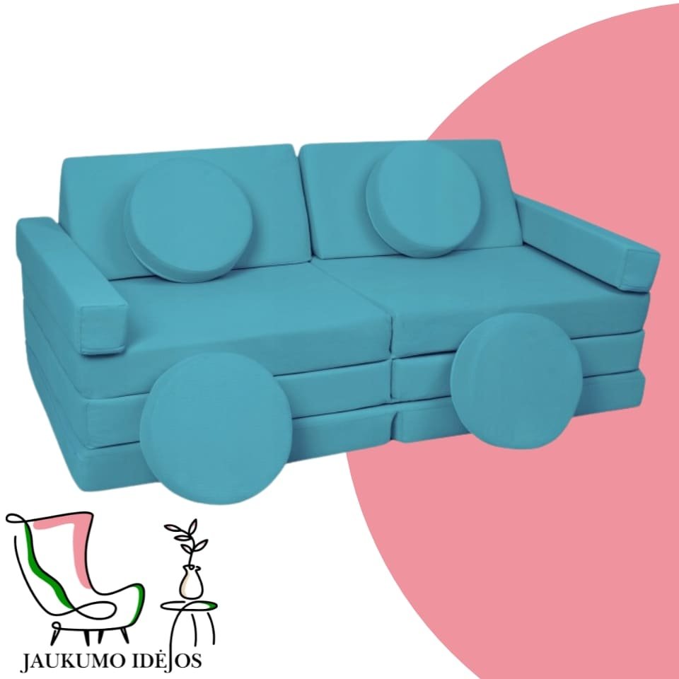 Šios modulinės sofos vaikams išsiskiria savo universalumu – atskiri minkšti moduliai gali būti lengvai perstatomi, todėl vaikai gali patys kurti savo erdves: nuo jaukios skaitymo vietos iki smagių žaidimų fortų. Būtent tokios jaukumo idėjos padeda ugdyti vaiko fantaziją ir savarankiškumą.