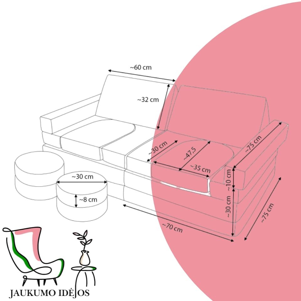 • Papildoma informacija: miegojimo funkcija, laisvos pagalvėlės, modulinė, nuimamas užvalkalas, su atlošo pagalvėlėmis