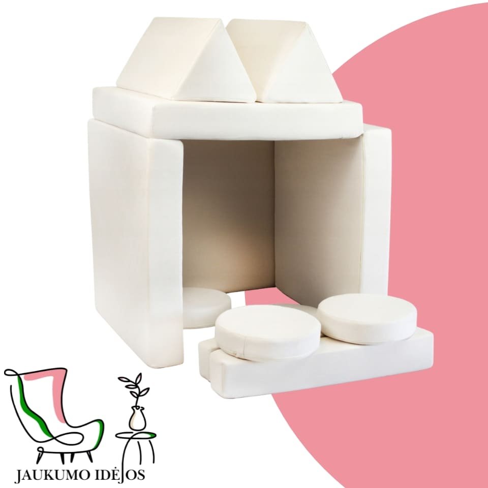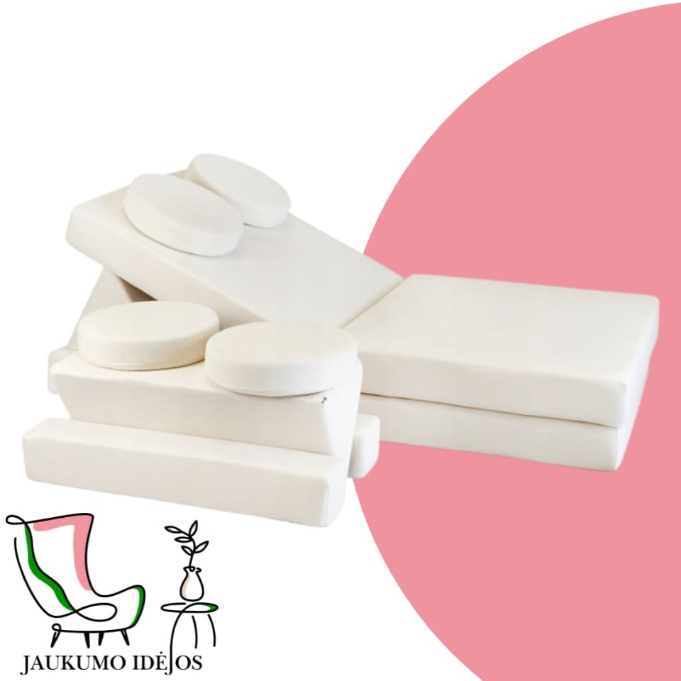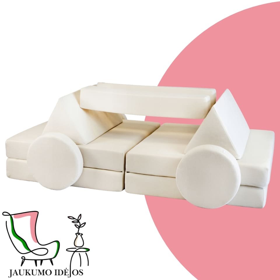 Šios modulinės sofos vaikams išsiskiria savo universalumu – atskiri minkšti moduliai gali būti lengvai perstatomi, todėl vaikai gali patys kurti savo erdves: nuo jaukios skaitymo vietos iki smagių žaidimų fortų. Būtent tokios jaukumo idėjos padeda ugdyti vaiko fantaziją ir savarankiškumą.