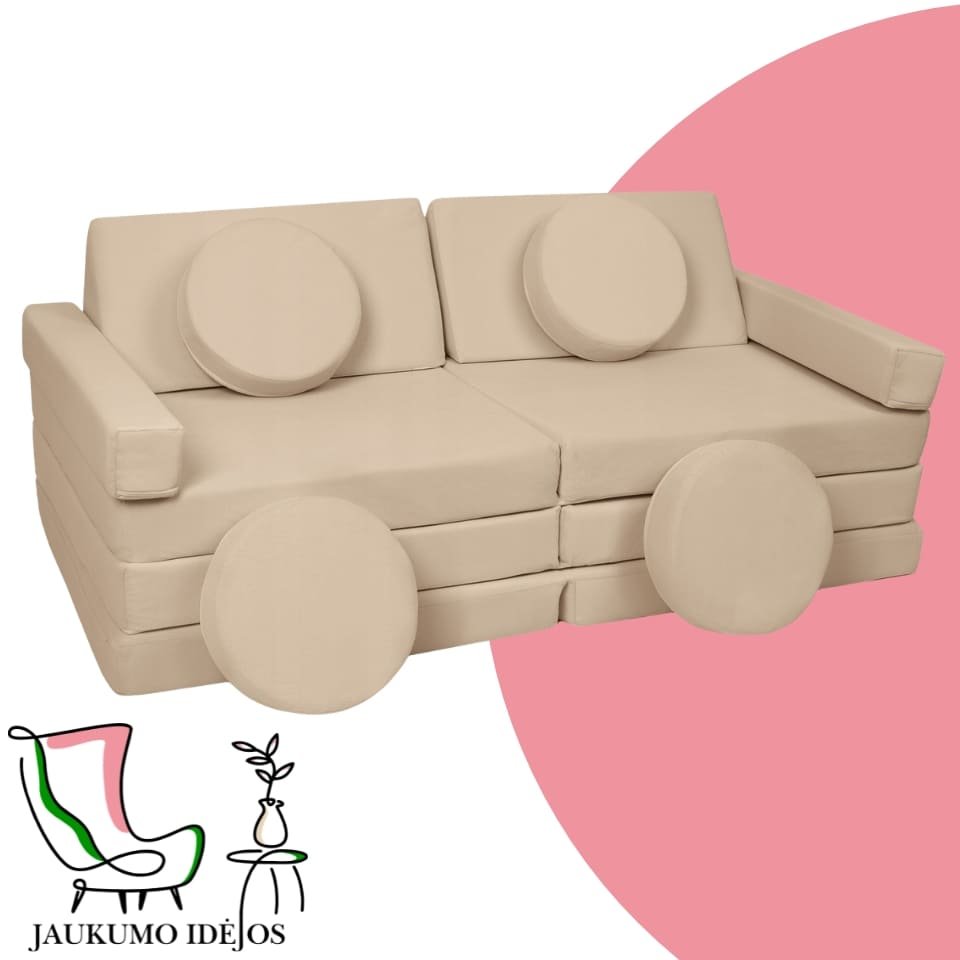 Šios modulinės sofos vaikams išsiskiria savo universalumu – atskiri minkšti moduliai gali būti lengvai perstatomi, todėl vaikai gali patys kurti savo erdves: nuo jaukios skaitymo vietos iki smagių žaidimų fortų. Būtent tokios jaukumo idėjos padeda ugdyti vaiko fantaziją ir savarankiškumą.