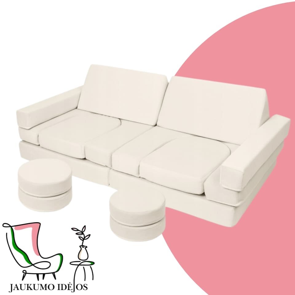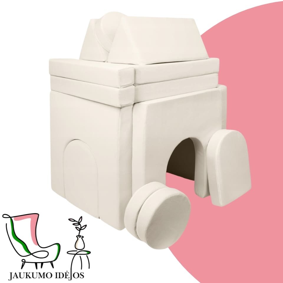 Šios modulinės sofos vaikams išsiskiria savo universalumu – atskiri minkšti moduliai gali būti lengvai perstatomi, todėl vaikai gali patys kurti savo erdves: nuo jaukios skaitymo vietos iki smagių žaidimų fortų. Būtent tokios jaukumo idėjos padeda ugdyti vaiko fantaziją ir savarankiškumą.