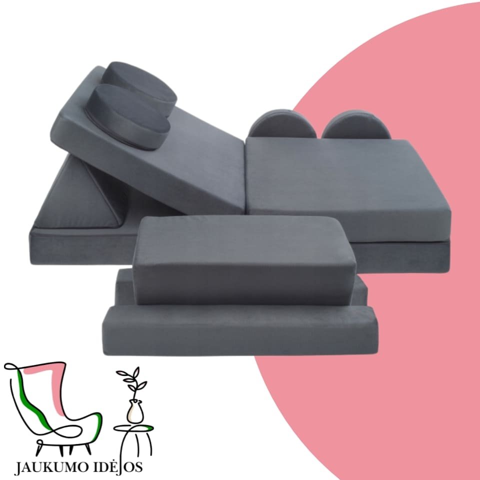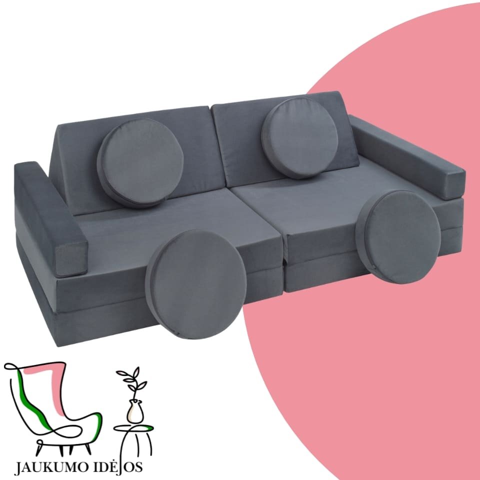 Šios modulinės sofos vaikams išsiskiria savo universalumu – atskiri minkšti moduliai gali būti lengvai perstatomi, todėl vaikai gali patys kurti savo erdves: nuo jaukios skaitymo vietos iki smagių žaidimų fortų. Būtent tokios jaukumo idėjos padeda ugdyti vaiko fantaziją ir savarankiškumą.