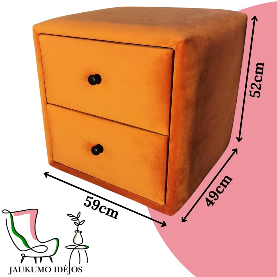 Naktinė minkšta miegamojo spintelė prie lovos 59cm x 49cm x 52cm